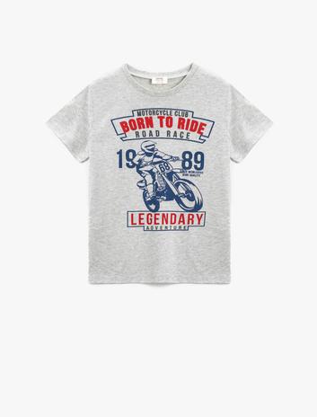 Motosiklet Baskılı Kısa Kollu Tişört Sepete Ekle
