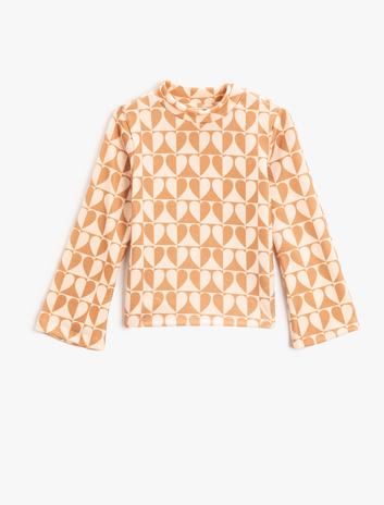 Kız Çocuk Dik Yaka Geniş Uzun Kollu Tişört