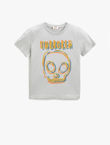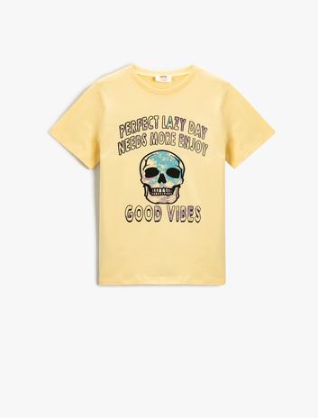 Sloganlı Kuru Kafa Baskılı Kısa Kollu Tişört Pamuklu Bisiklet Yaka Sepete Ekle