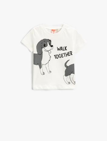 Köpek Baskılı Kısa Kollu Tişört Pamuklu Sepete Ekle