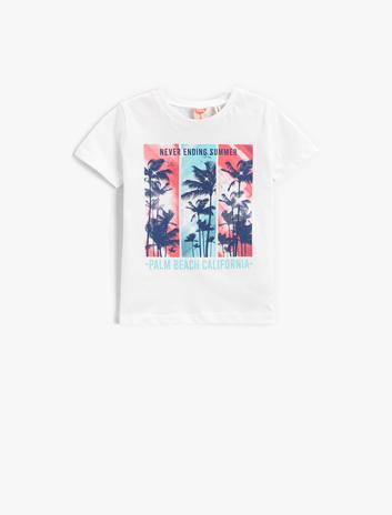 Erkek Bebek Palmiye Baskılı Kısa Kollu Tişört Bisiklet Yaka