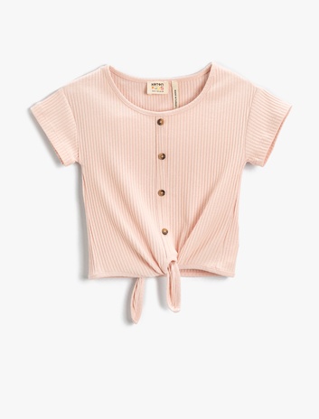 Bağlama Detaylı Dokulu Kısa Kollu Tişört Pamuklu Sepete Ekle