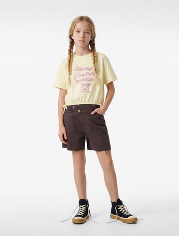 Kız Çocuk Crop Oversize Tişört Baskılı Kısa Kollu Bisiklet Yaka Pamuklu