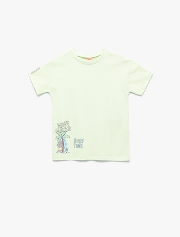 Bisiklet Yaka Yaz Temalı Kısa Kollu Baskılı Tişört Sepete Ekle