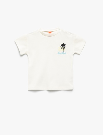 Palmiye Baskılı Bisiklet Yaka Kısa Kollu Pamuklu Tişört Sepete Ekle