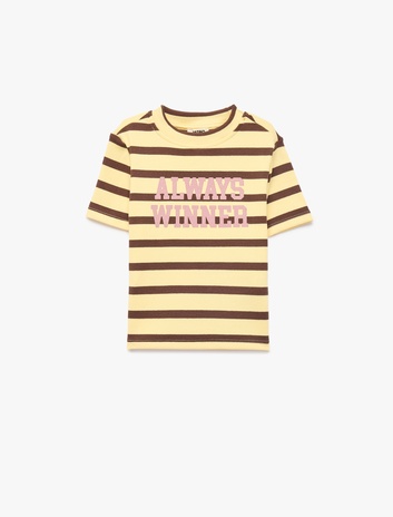 Pamuklu Baskılı Kısa Kollu Bisiklet Yaka Çizgili Tişört Sepete Ekle