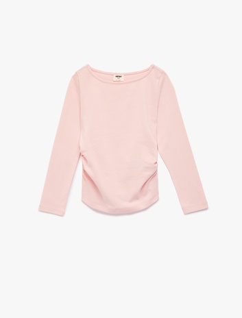 Pamuklu Kayık Yaka Büzgülü Uzun Kollu Tişört Sepete Ekle