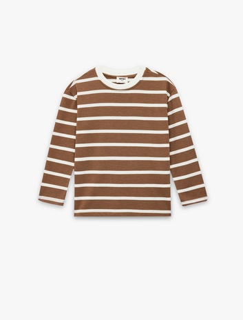 Viskon Karışımlı Uzun Kollu Bisiklet Yaka Çizgili Tişört Sepete Ekle