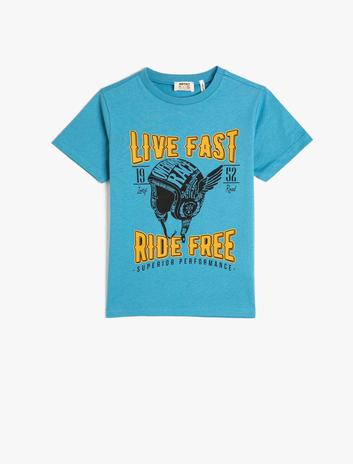 Erkek Çocuk Slogan Baskılı Kısa Kollu Tişört Bisiklet Yaka Pamuklu