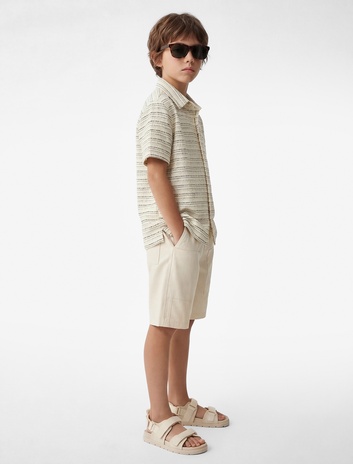 Beli Lastikli Pamuklu Çizgili Şort Sepete Ekle