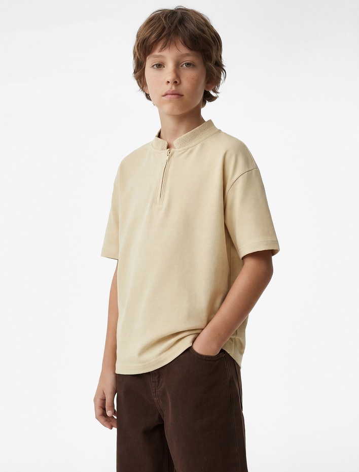 Erkek Çocuk Pamuklu Fermuar Detaylı Kısa Kollu Polo Yaka Tişört