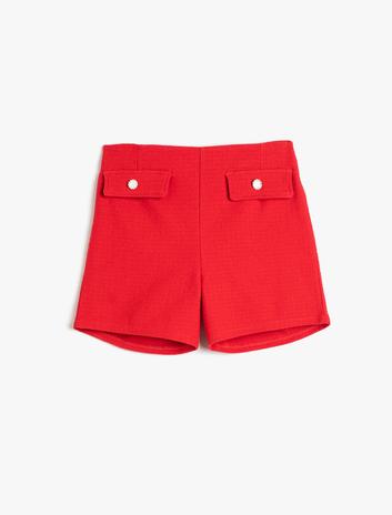 Kız Çocuk Tüvit Şort Süs Cepli Pamuklu