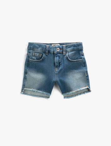 Kız Çocuk Kot Şort Kuşak Detaylı Cepli Pamuklu Beli Lastikli