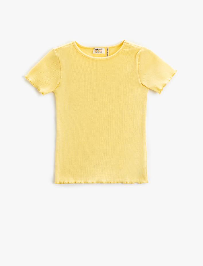 Kız Çocuk Basic Tişört Slim Fit Kısa Kollu Bisiklet Yaka Ribanalı