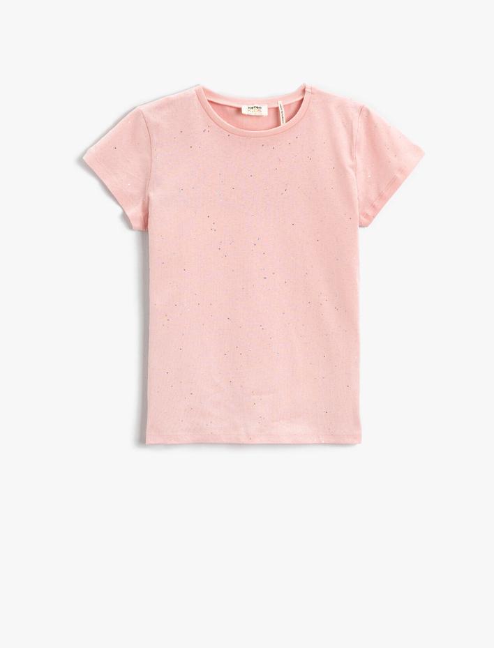 Kız Çocuk Baskılı Kısa Kollu Tişört Pamuklu Bisiklet Yaka