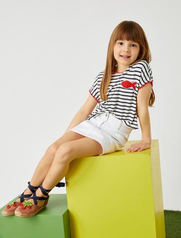 Kız Çocuk Fiyonklu Şeritli Şort Pamuklu