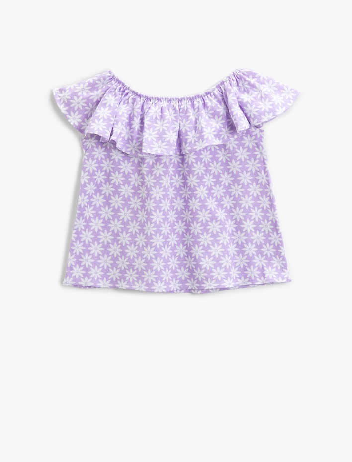 Çiçekli Tişört Fırfırlı Pamuklu Sepete Ekle