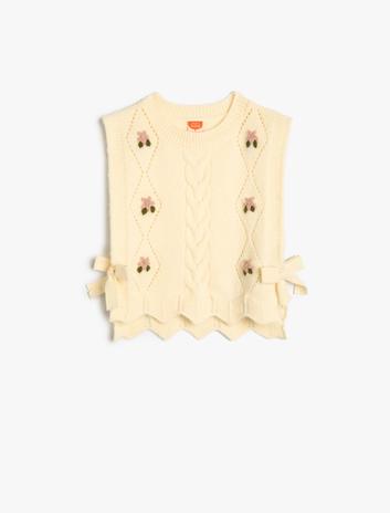 Kız Çocuk Bisiklet Yaka Kolsuz Saç Örgü Dokulu Fiyonklu Crop Süveter
