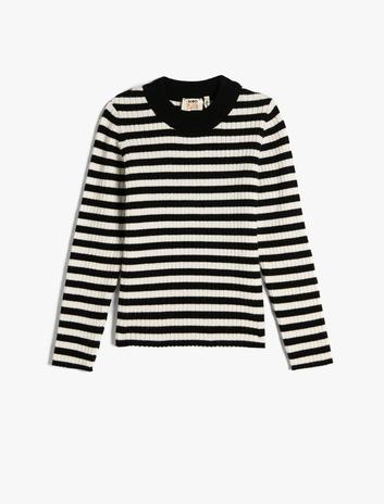 Kız Çocuk Uzun Kollu Bisiklet Yaka Çizgili Triko Kazak