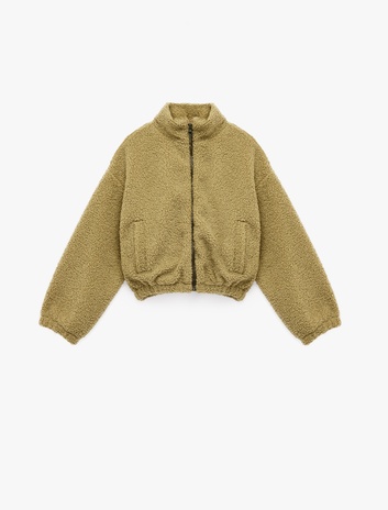 Kız Çocuk Peluş Detaylı Gömlek Yaka Uzun Kollu Oversize Biker Ceket