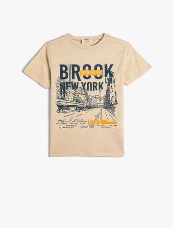 Tişört New York Baskılı Kısa Kollu Bisiklet Yaka Pamuklu Sepete Ekle