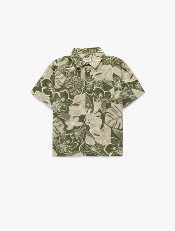 Pamuklu Cepli Devrik Yaka Desenli Kısa Kollu Gömlek Sepete Ekle