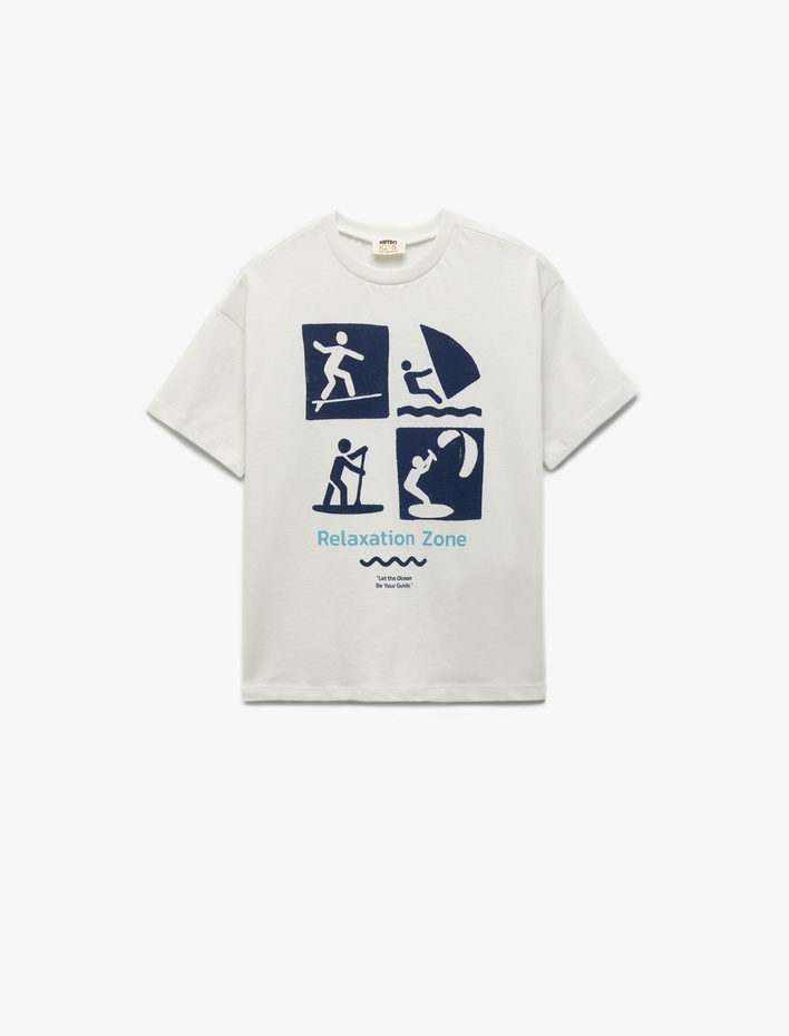 Erkek Çocuk Pamuklu Baskı Detaylı Oversize Bisiklet Yaka Sweatshirt
