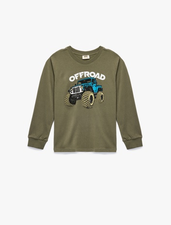 Erkek Çocuk Pamuklu Bisiklet Yaka Uzun Kollu Baskılı Tişört