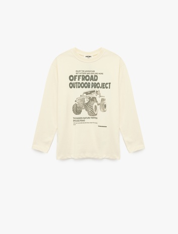 Erkek Çocuk Uzun Kollu Bisiklet Yaka Pamuklu Baskılı Oversize Tişört