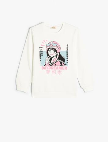 Kız Çocuk Anime Baskılı Sweatshirt Bisiklet Yaka Şardonlu