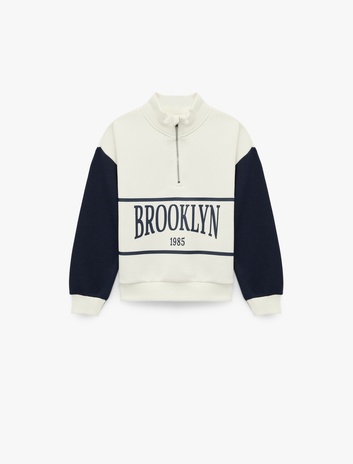 Yarım Fermuarlı Baskılı Uzun Kollu Dik Yaka Sweatshirt Sepete Ekle