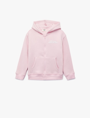 Kız Çocuk Baskılı Uzun Kollu Fermuarlı Kapşonlu Sweatshirt