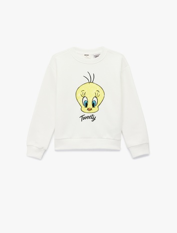 Lisanslı Tweety Baskılı Uzun Kollu Bisiklet Yaka Sweatshirt Sepete Ekle