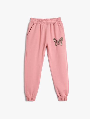 Kız Çocuk Jogger Eşofman Altı Kelebek Baskılı Cepli Pamuklu