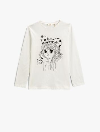 Kız Çocuk Uzun Kollu Tişört Baskılı Bisiklet Yaka Pamuklu