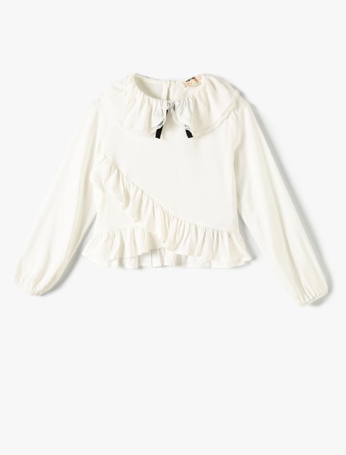 Kız Çocuk Bluz Bebe Yaka Uzun Kollu Fırfırlı Viskon Kumaş