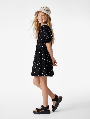 { "id": "8684846144337", "name": "Bisiklet Yaka Balon Kollu Fiyonk Detaylı Pamuklu Puantiyeli Elbise", "taxonomy":["KIDSWEAR","GIRLSWEAR","GIRLS","WOVEN DRESSES","DRESSES"], "currency": "TRY", "unit_price": 1399.99 , "unit_sale_price": 1399.99 , "url": "https://www.koton.com/bisiklet-yaka-balon-kollu-fiyonk-detayli-pamuklu-puantiyeli-elbise-siyah-desenli-4093931-2/", "stock": 5, "color": "SİYAH DESENLİ", "size": "6/7 Yaş", "product_image_url": "https://ktnimg2.mncdn.com/products/2026/04/02/3169849/38a2b298-c20f-4649-a6c3-37069e0fff52_size870x1142.jpg" }