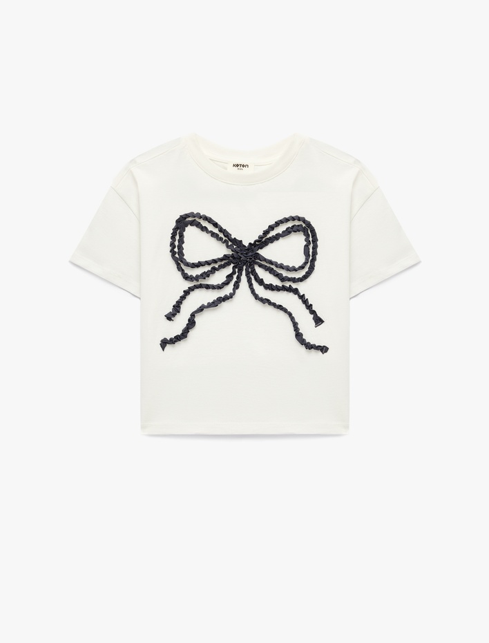 Fiyonklu Bisiklet Yaka Kısa Kollu Pamuklu Tişört Sepete Ekle
