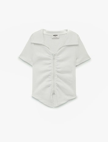 Kız Çocuk Pamuklu Fermuar Detaylı Kısa Kollu Polo Yaka Tişört