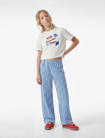Erkek Çocuk Beli Bağcıklı Rahat Kalıp Çizgili Pantolon