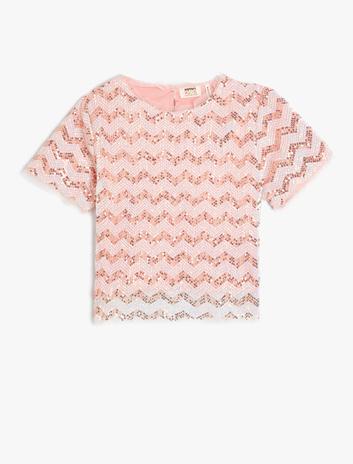 Pullu Payetli Tişört Astarlı Kısa Kollu Bisiklet Yaka Sepete Ekle