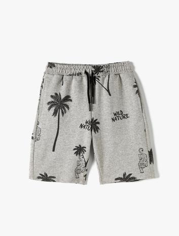 Erkek Çocuk Şort Kaplan Baskı Detaylı Cepli Beli Bağlamalı
