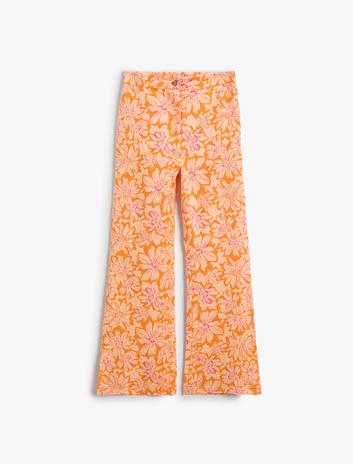 Kız Çocuk Keten İspanyol Paça Pantolon Çiçekli