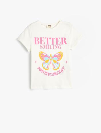 Tişört Kısa Kollu Bisiklet Yaka Kelebek Baskılı Pamuklu Sepete Ekle