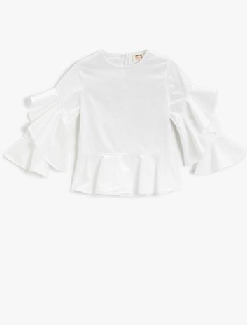 Kız Çocuk Fırfırlı Uzun Kollu Bluz Pamuklu