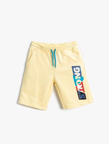 Erkek Çocuk Slogan Baskılı Şort Pamuklu Beli Bağcıklı
