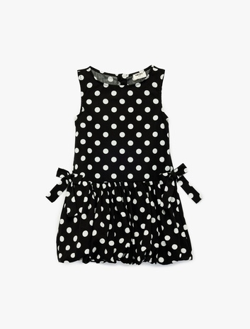 Pamuklu Bisiklet Yaka Kolsuz Fiyonk Detaylı Puantiyeli Balon Elbise Sepete Ekle
