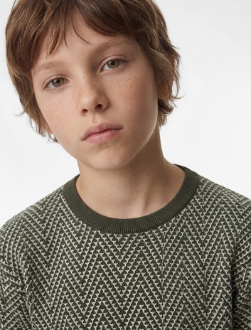 Erkek Çocuk Bisiklet Yaka Balıksırtı Desenli Kısa Kollu Oversize Sweatshirt