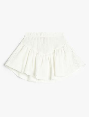 Kız Çocuk Şort Etek Beli Lastikli Dokulu Pileli