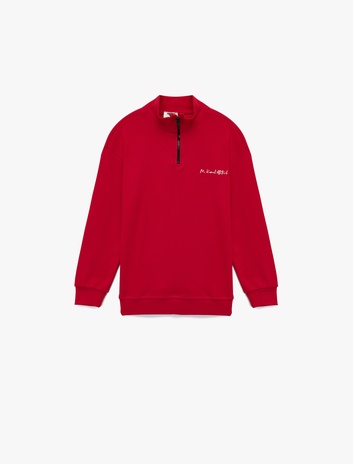 Dik Yaka Yarım Fermuarlı Uzun Kollu Atatürk Nakışlı Pamuklu Sweatshirt Sepete Ekle